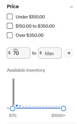 In general, it’s not profitable to buy and grade cheap cards. Because there are far more listings in the $0-$100 range than any other price bucket, setting a minimum price filter around $100 is extremely helpful in removing irrelevant listings. You can find this in the side window of your eBay page.