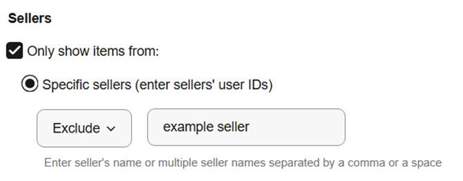 Scroll down to the “Sellers” section, select “Exclude,” and type in any sellers you don’t want to buy from.