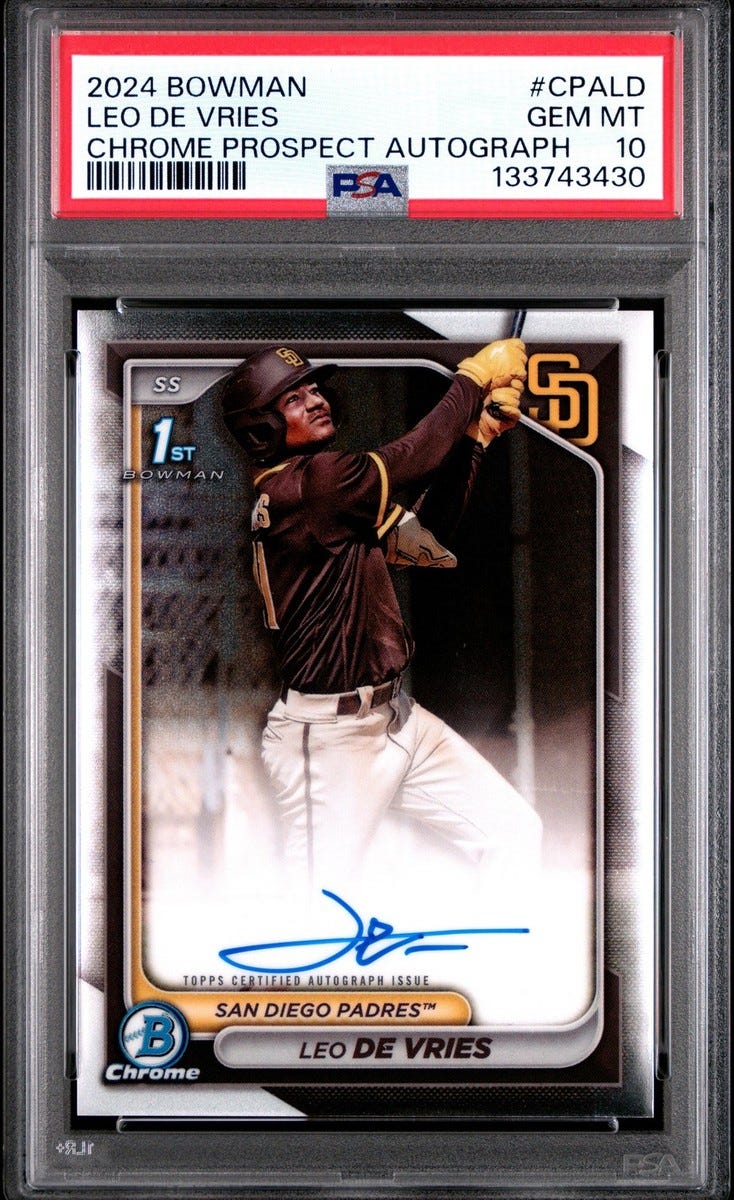 This was actually a very tough card to value, as it seems to have really spiked over the last month or so, probably in response to increasing hype around Konnor Griffin as the #1 overall prospect. With that said, we will be looking for gradable copies of this card for just under $600. I’ll also be keeping a close eye on this market to see where it settles.