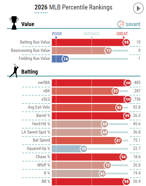 The one thing that stands out so far though is that Trout’s strikeout rate is down to 19.4% so far this season, after being well above 30% in 2025. While players can be productive even with high K%, putting the ball in play more often means that strong quality of contact has more opportunity to turn into production.