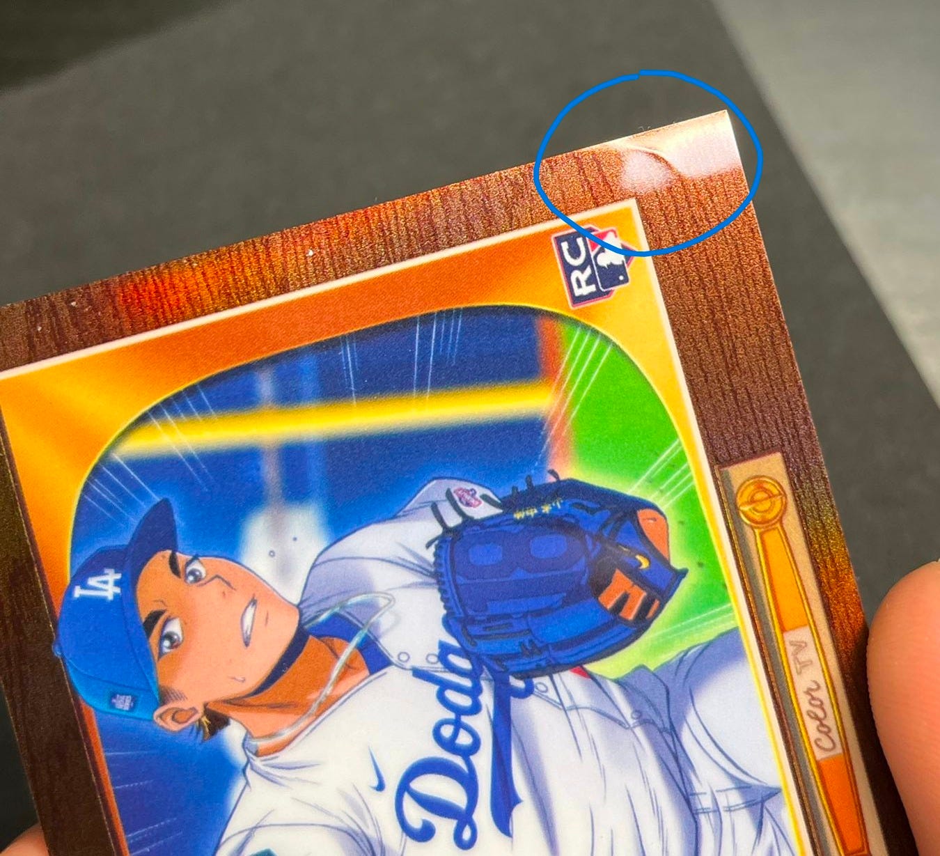 Here is an example of scratches on a 2018 Topps Chrome Shohei Ohtani Rookie Card.